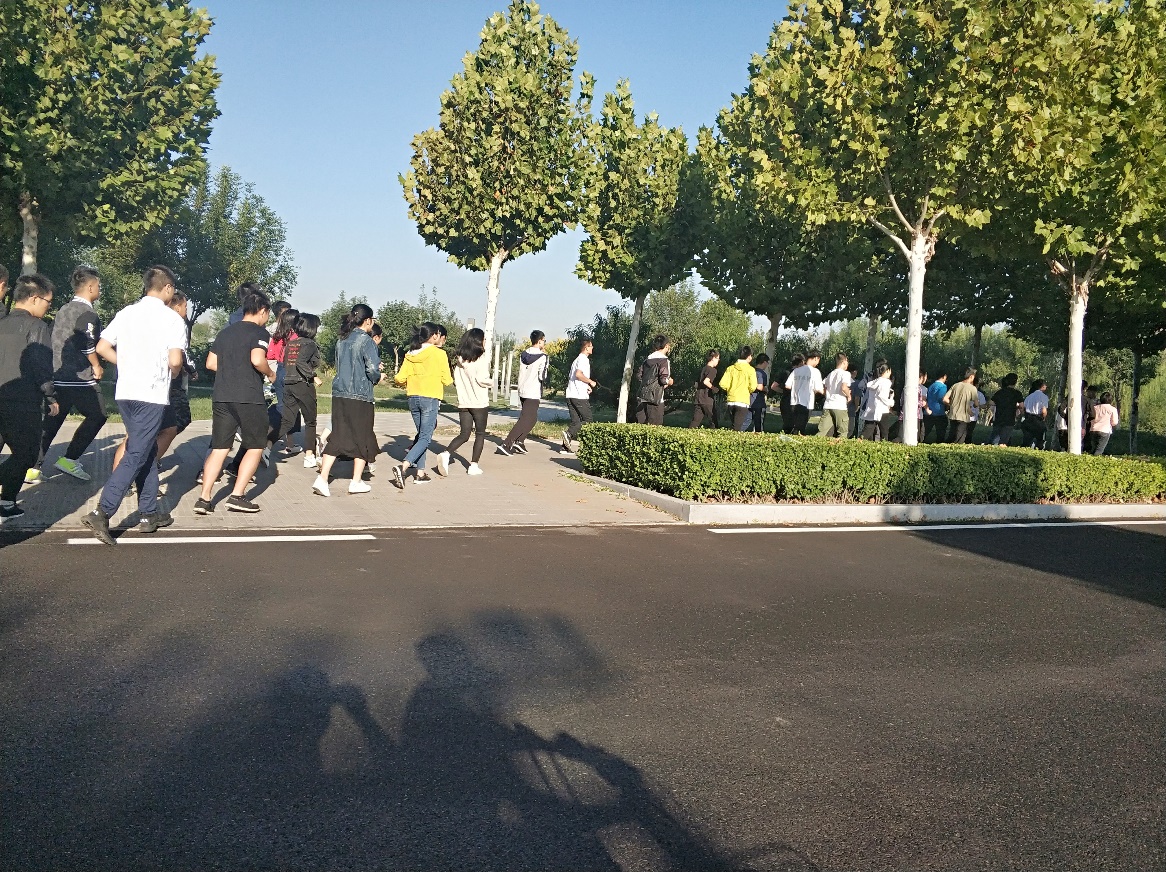 晨跑开始后,大家排着队伍怀着饱满的热情,由茅以升班打头阵,沿着青年湖边整齐的跑着。虽然有将近1km的路程,但并没有人因此掉队,大家都坚持了下来。
