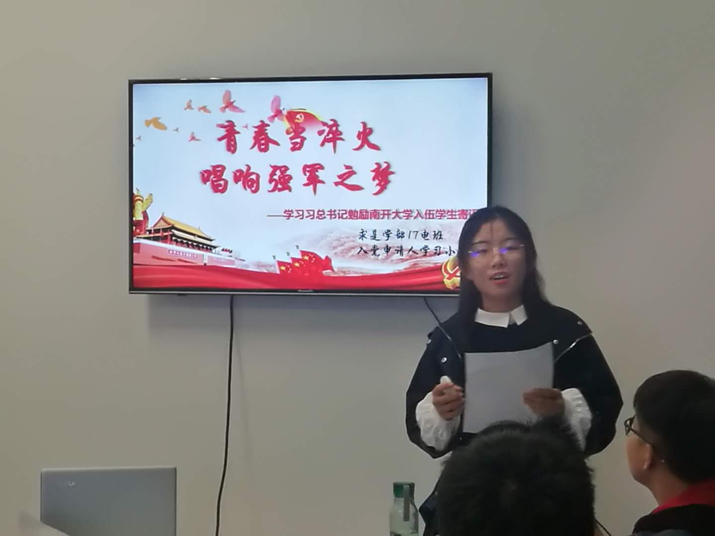 (通讯员 刘金秋 张特 战仕承 游莅荟)2018年10月11日晚,求是学部2017级入党申请人小组以大类专业为单位组织开展学习习近平总书记再次勉励南开8名入伍大学生有关知识精神,54名入党申请人分四组参会。