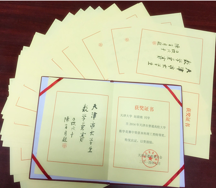 (通讯员 纪颖)近日,我校下发了2014年天津市普通高校大学数学竞赛(本科理工类)学生获奖证书,求是学部学生喜获佳绩。此次竞赛本科理工类评出26项特等奖,我校共获得17项,其中求是学部学生获得6项,占我校特等奖总数的35%;竞赛评出一等奖77项,我校获得48项,其中求是学部获得11项,特等奖和一等奖总数占我校的25%,各级奖励数量位居我校前列。