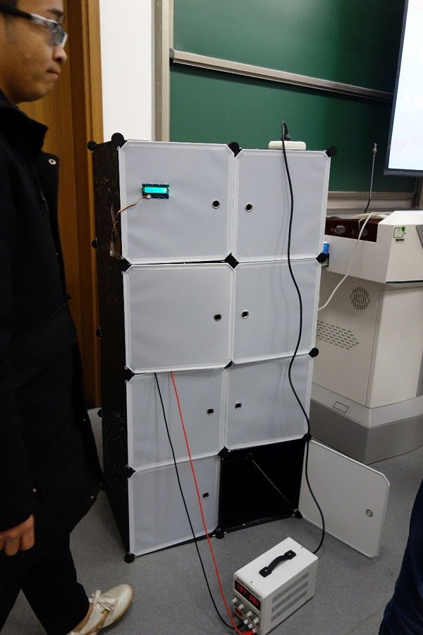 第10组的“智能衣柜”则从日常起居出发,通过户外温度、湿度传感器将气温、天气、着装建议和晴雨用具等信息通过衣柜门上装配的显示屏提示给用户,并可通过蓝牙连接至手机,提示气温和天气。同时,衣柜内设置了喷雾装置,能实现衣物除菌、祛味和保养的功能。