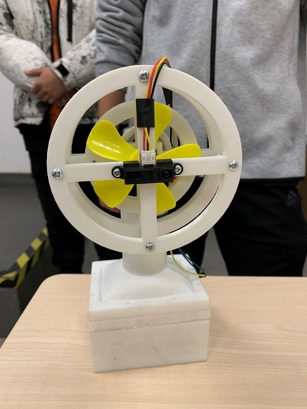 第43组的“智能风扇”利用红外传感器检测人与风扇之间的距离,以此调节风扇转速,可实现无级变速。另外,为了节约能源,智能风扇增设了人来自动转、人走自动停的功能,且小巧便携,兼具人性化和节能环保的特性。