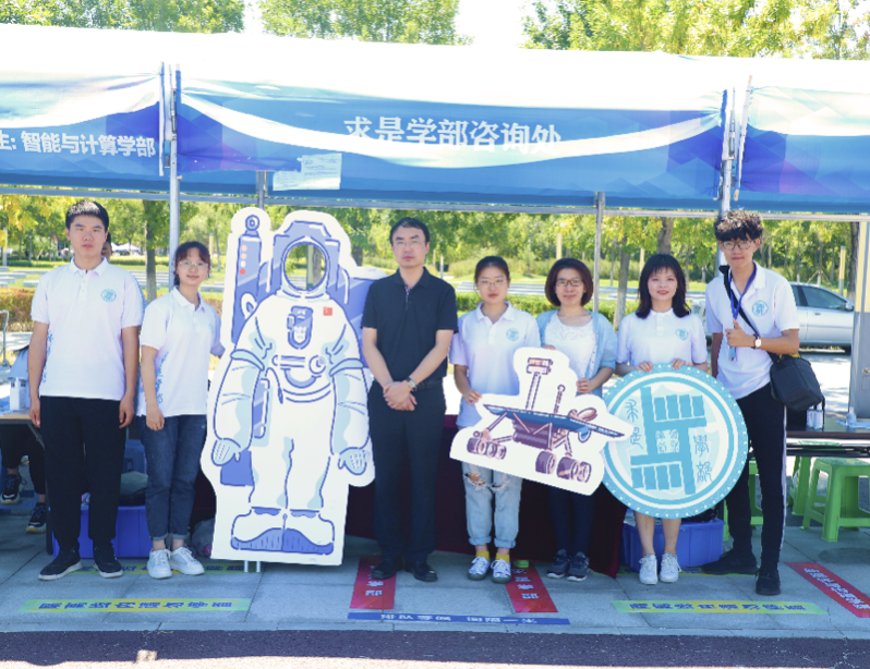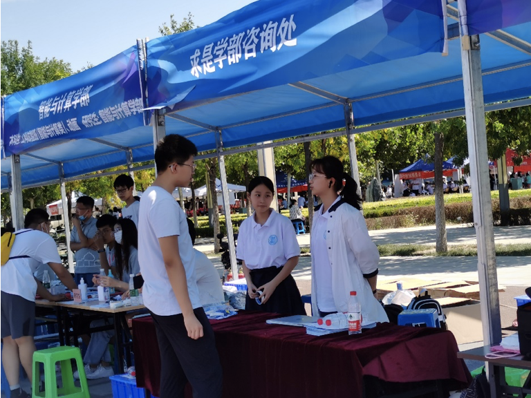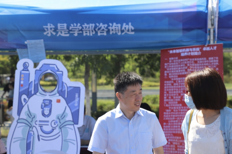 9月9日,求是学部迎新工作第二天,晴朗的天空下的蓝色帐篷格外清凉,也分外热闹。来自五湖四海的天大学子前来求是学部迎新处咨询相关事宜,他们对于“未来智能机器与系统”平台表示出了浓厚的兴趣。志愿者们早早地来到场地,竭力为每一位新生答疑解惑、提供最优的服务。