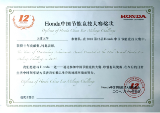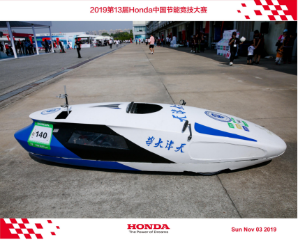 2019年10月末,远赴广州,代表天津大学参加2019第十三届Honda中国节能竞技大赛,两天的正赛分别以249.94km/L,224.36km/L获得了燃油组第11名的好成绩,创造了天津大学十三年来在本项赛事的最好成绩。