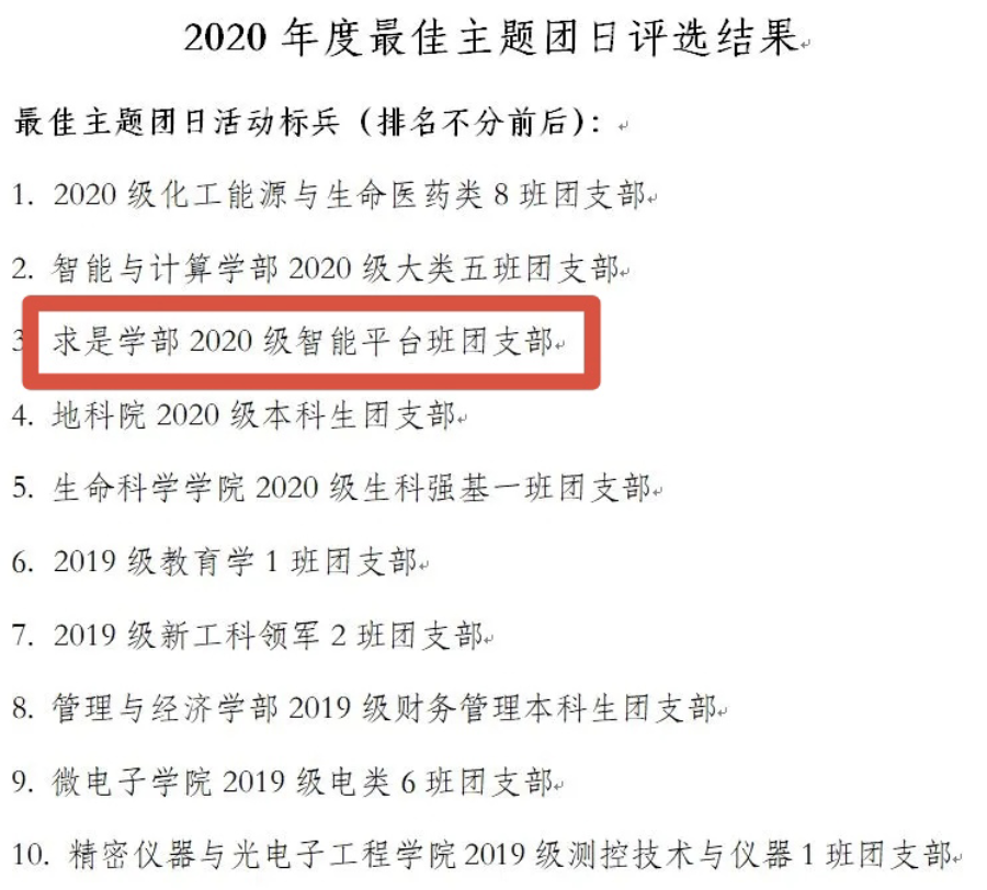求是学部20级智能平台班团支部正是这样的一个优秀集体,支部成员与祖国同命运,与时代共奋进,学习“四史”,打破思维壁垒,把视野拓展到宇宙、延伸到未来。他们通过项目式教学打下基础,通过“四史”学习树立志向,立志为突破我国的卡脖子技术,开发中国自主产权芯片、成立和华为比肩的民族企业而努力奋斗,以拳拳赤子心报效祖国。在1月20日举行的“2020年度最佳主题团日评选”中,求是学部20级智能平台班团支部在60个院级优秀支部中脱颖而出,获评天津大学“2020年度最佳主题团日活动标兵”的称号。下面请允许我带领大家走进这一优秀集体吧~
