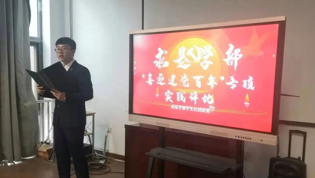 3月26日下午,天津大学求是学部“喜迎建党百年”专题实践评比在我校43教A312如期进行。