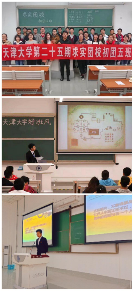 他参加天津大学第四、五届好班风评比启动仪式,分享班级建设心得,并建立新生班长群,提供班长交流互动平台,营造班级建设良好氛围。任职求实团校期间,他培训150余团学骨干,为300余名新生带去大学第一节团课,为团学组织注入新的活力。