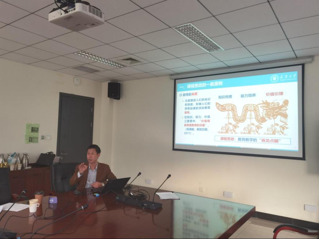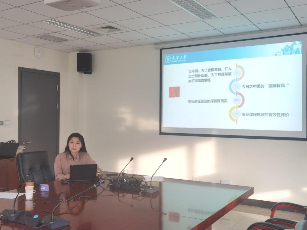 马克思主义学院李瑞婷做了关于“专业课课程思政如何做深落实”的报告。她从器物、制度和精神三个维度解释了加强课程思政的重要意义,通过解读十九届六中全会精神和《高等学校课程思政建设指导纲要》,引导工科教师应把马克思主义立场观点方法与科学精神培养结合起来,科学合理拓展专业课的深度、广度和温度。