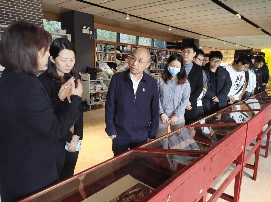 全体党员在图书馆讲解员的带领下参观了图书馆红色展览。讲解员一一介绍了陈列在展区的红色画作,她提到,这些作品反映了中国共产党早期在党规党纪、党风廉政等方面取得的建设成果,充分体现了中国共产党的先进性、纯洁性。