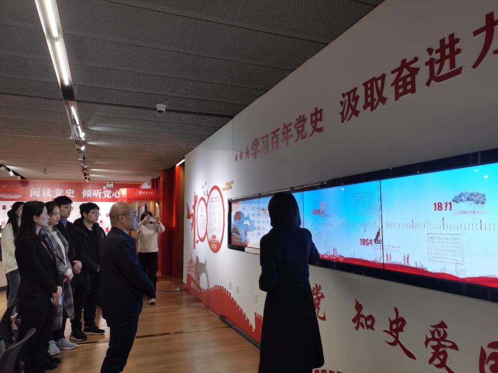 随后讲解员向全体党员介绍了红色阅读墙,鼓励党支部和党员积极开展党史学习,提升理论素养,丰富组织生活。