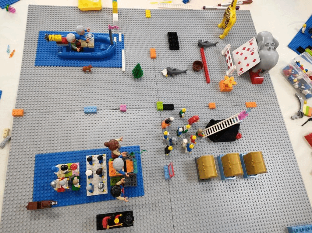 指导教师张琳以“乐高鸭子”道具开启此次活动,同学们要在规定时间内完成鸭子的拼接。学员们发散思维,搭建出16种完全不同的鸭子造型并相互交流各自鸭子所代表的含义。基于同学们的鸭子模型,张琳老师引导大家想象40年后的世界,利用“社会中将会存在的痛点”和“未来社会中存在的展望”两种情境进一步挖掘潜能,催生抽象思维并讲述各自的故事。