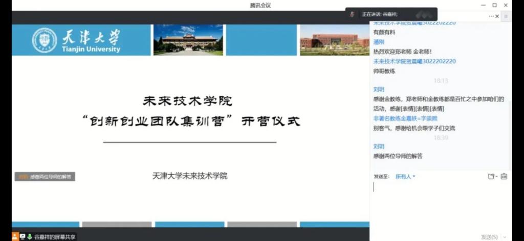 2022年1月6日晚,未来技术学院科技创新协会举办了“创新创业团队集训营”开幕仪式。未来技术学院副院长、党委副书记潘刚等出席活动。金嘉轶、郑喆、秦俊男三位老师作为特邀嘉宾出席活动,并受聘为训练导师。会议由2022级本科生谷嘉祥主持。