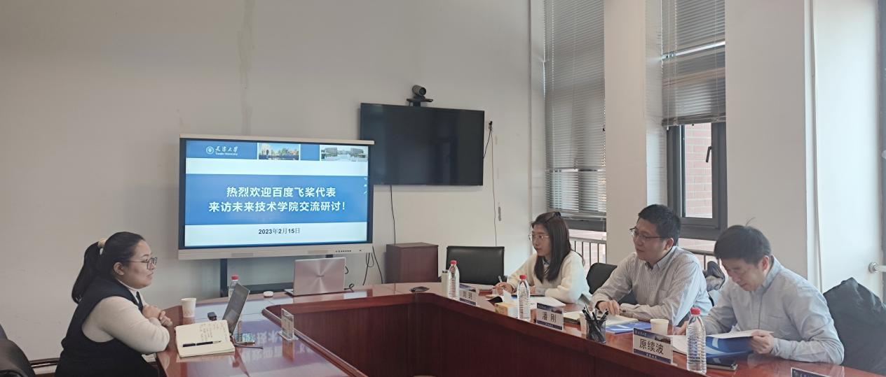 (通讯员 叶子钰)为进一步推进未来卓越人才培养模式的创新探索,2月15日下午,未来技术学院与百度飞桨企业代表于43教A309开展合作交流座谈会,百度AI技术生态产品运营经理丁进、未来技术学院常务副院长原续波、党委副书记潘刚以及本科生辅导员刘玥、叶紫钰共同参与了此次座谈会。