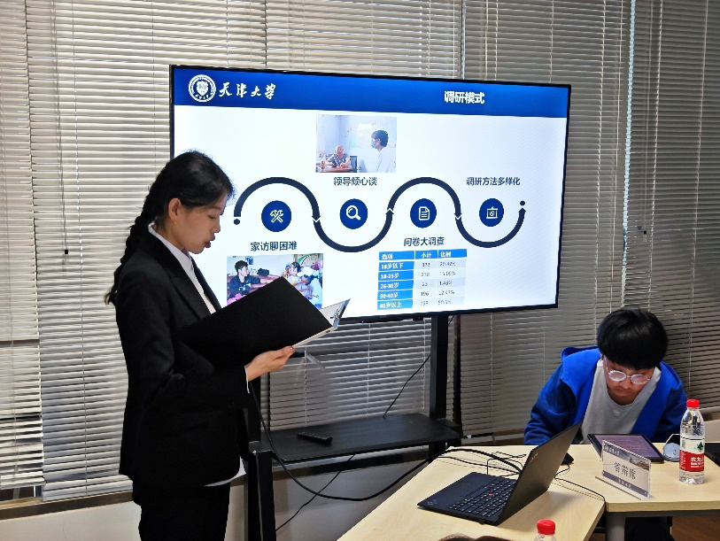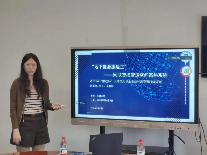 随后,进入学生展示答辩环节,参与“挑战杯”的各支队伍依据分组及顺序依次答辩。科技发明制作类项目名称依次为“‘地下能源搬运工’——网联智控管道空间蓄热系统”、“多拟态生理信号融合的视觉反馈肢体”、“高性价比智能仿生导盲犬”、“一种辅助老年人行走站立的膝关节柔性外骨骼”。哲学社会科学类社会调查报告项目名称为“让科教点亮乡村星火——乡村振兴教育路径调研及科普教学可行性研究”。答辩时,各组组长先对各自的项目进行介绍,之后由指导老师对项目进行提问,并给出指导意见,以达到对项目打磨润色的效果。每组项目答辩过程结束后,指导老师对各个项目进行了打分,评分标准包括项目的科学性、先进性、现实意义以及学生的工作分量等。