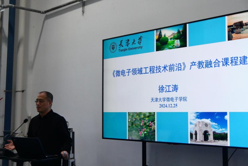 徐江涛教授以《微电子领域工程技术前沿》为例系统介绍了建设产教融合课程的意义、路径和具体举措,深入剖析了产教融合在课程建设中的重要性和实施策略。
