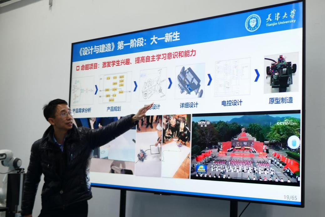 随后,康荣杰教授以《设计与建造》课程为例,分享了机械学院在新工科进阶式项目制课程建设方面的经验,展示了项目制课程在提升学生实践能力和创新思维方面的成效。