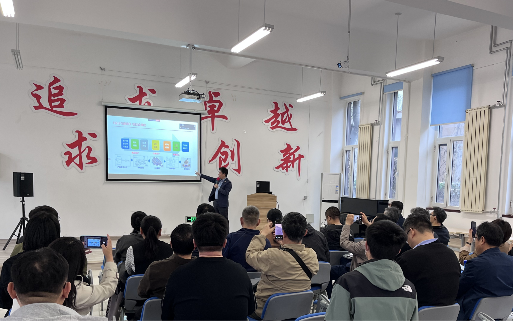 原续波教授以《设计与建造I》课程为范例,深度解读项目式教学(PBL)的理念以及对工程硕士培养的核心价值。他指出,PBL以真实问题为起点,引导学生自主完成全流程实践验证,其本质是构建以学生为主体、实践为纽带、综合素养为内核的培养范式。该方法推动教师角色从“知识传授者”向“学习设计者”转型,依托校企协同将行业前沿需求转化为教学动能,使用贯穿培养全周期的“项目锚点教学法”实现理论教学与工程实践的螺旋式深度耦合。