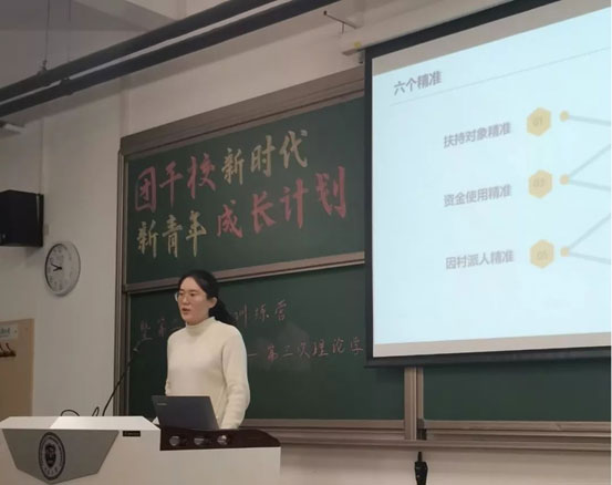 (通讯员 高志强 黄泽林)2019年12月09日,在43教A306,由求是学部团干校组织的“新时代,新青年”成长计划暨第三期骨干训练营理论学习顺利举行。本次学习邀请到天津大学学生党校党员骨干培训部的明成泽,讲解“精准扶贫”。求是学部学生会、学生社团团委、社研会及19级班团骨干参与培训。