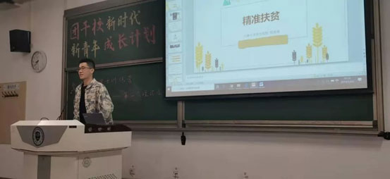 为了让同学们对精准扶贫有更深入的了解。明成泽举出我们身边的例子。“大家每天生活在学校里就已经扶贫了,食堂里的燕麦粥,水果节的苹果……我们发现扶贫就在你身边。”