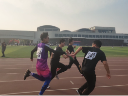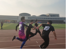 在接力赛场上,男子4×100米接力勇夺北洋园校区第二名。