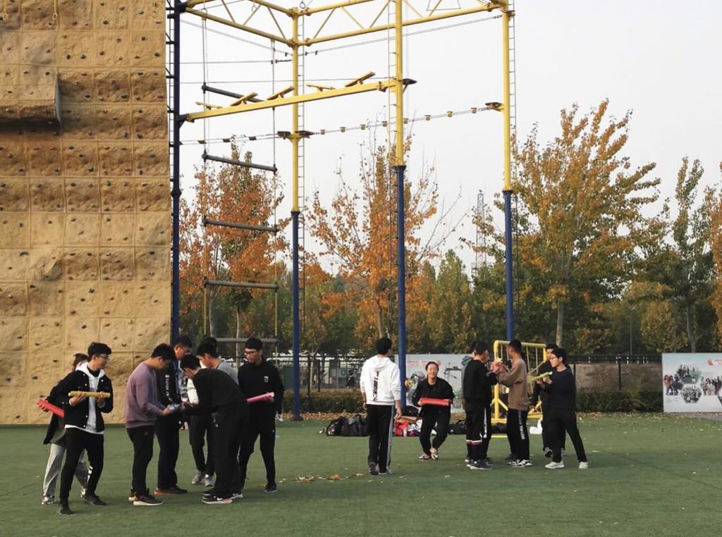 整体来说,本次面向20级的素拓活动比较成功。20级同学们的参与度比较高,游戏过程中的活跃度也很高。但是,活动中仍旧存在一些不足。因为器材数量比较少,只能支持同时两组开展活动,所以另外两组会有轮空的时间。而素拓师的注意力主要放在组织另外两组的游戏上,这部分的同学就没有很好的兼顾到。有些同学,就开始攀爬一些器材或者打扑克或者玩手机。今后的素拓活动中,可以更多强调一下纪律,同时让游戏的流程更加紧凑。