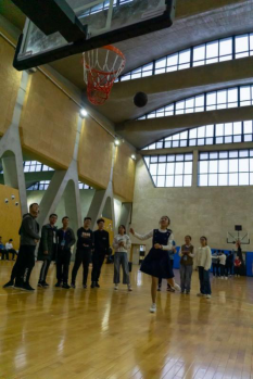 有了之前篮球赛的经验,投篮比赛上女生也是巾帼不让须眉。