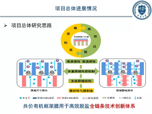 该组总体研究思路是从限域效应出发,结合尺寸筛分与静电排斥多重限域传质新机制。制备用于高效脱盐的共价有机框架膜,开发截流率和渗透率协同提高的高效脱盐膜。围绕膜材料筛选-膜可控制备与多级限域结构精密构筑-膜内多重限域传质机制创建-脱盐过程高效强化,进行全链条设计, 开展贯通式研究。目前,项目按照项目申请书的指标和进度要求顺利实施。确定适宜浓度的反应体系使截流率和渗透性均达到很高的水平。