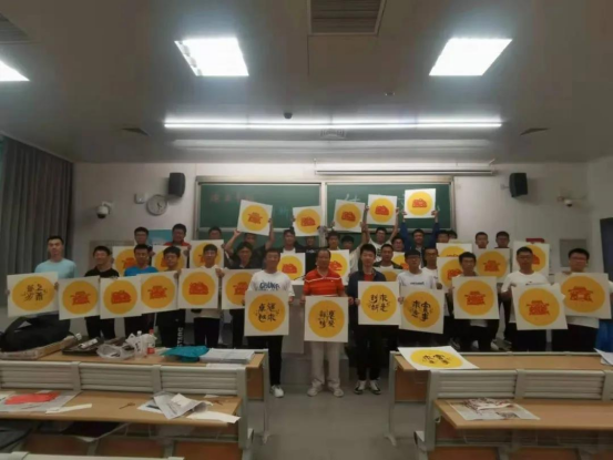 在整场活动中,同学们从纸版中体会传统手工艺术的魅力,更在裁剪活动中,戒骄戒躁,练就沉稳的心性。当剪好的纸版,被刷上红色的颜料,从黄色的背景版上揭起,印出一面五星红旗,我们2个小时的劳动成就了艺术。