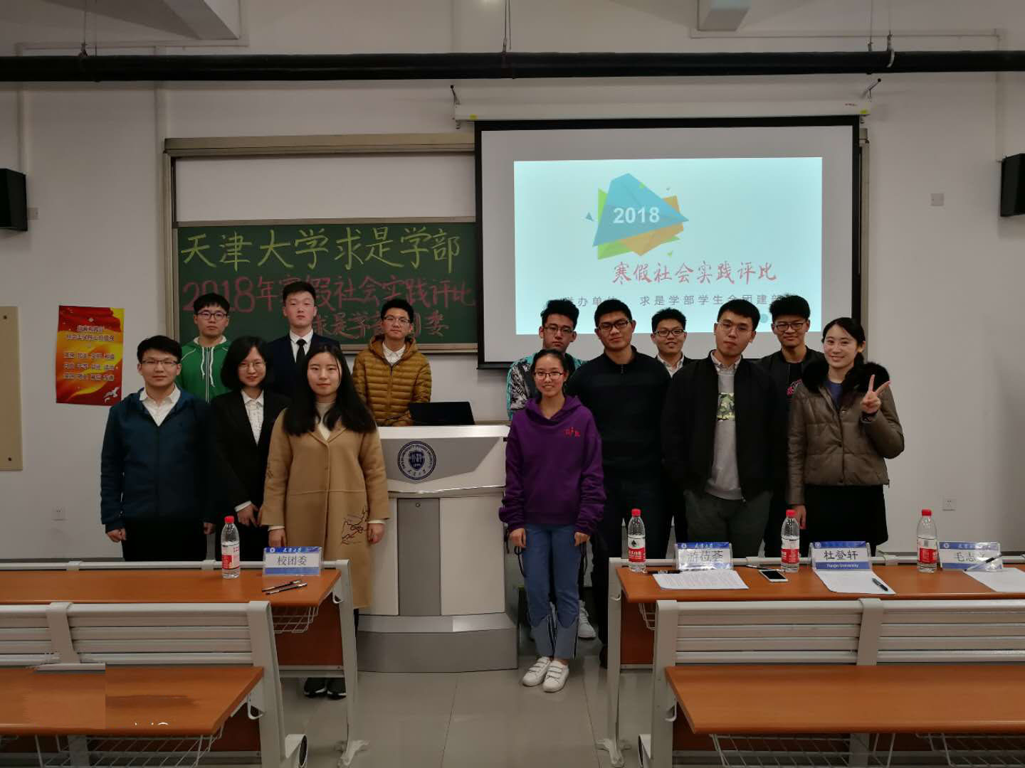 2018年3月23日星期五晚6点30分,天津大学求是学部寒假实践活动评比在我校43楼A306教室顺利开幕。