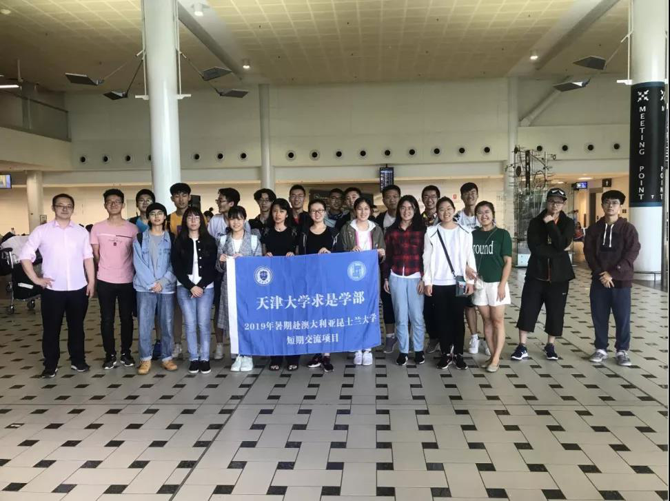 7月7日上午,飞机在布里斯班机场平稳降落,印着“天津大学求是学部”的蓝色队旗后,站立着一个个前去圆梦的求是学子。期待的眼神向往着远方,上扬的嘴角希冀着前路。
