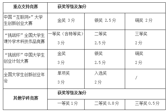 5.在学业相关科研竞赛中取得显著成绩,作为主力成员参加与学业相关的国内权威科研竞赛(全国赛)并获得三等奖以上奖励(国际赛事参照执行,但不得低于国内赛事相关要求),根据竞赛获奖情况给予0-3分加分。学科竞赛范围为列入高等教育学会《高校竞赛排行榜》的学科竞赛(全国赛)及各专业学院认定的竞赛。
