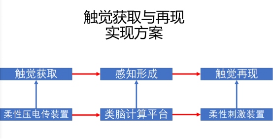 邓斌教授主要分为两个板块介绍。首先是项目的整体概况,他由触觉获取与再现的生理原理与生理结构讲起,并提出了获取与在线的方案,即柔性压电传装置来模拟触觉获取。为同学们生动地阐述了天津大学触觉获取与再现的背景及研究条件。