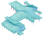 深圳大运城市综合交通枢纽是集地铁、城际、公交多种交通为一体的深圳东部最大的综合交通枢纽。其承担了深圳东部对外交通的门户功能。该交通枢纽是一个拥有复杂曲面、新型节点、新型构件的大空间建筑,该结构以景观平台十字形态为出发点,采用双“L”形态的曲线钢结构框架,主承重钢结构屋盖为大型弯扭空间网格结构。