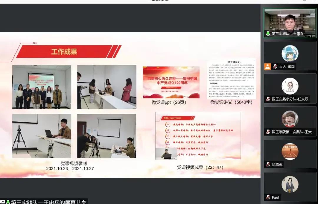 2021年11月1日下午16:00,天津大学求是学部预备党员党校实践答辩通过腾讯会议线上开展,共有5支队伍参与答辩。求是学部、国际工程师学院多位党支部老师及各党支部支部书记担任评委出席答辩。