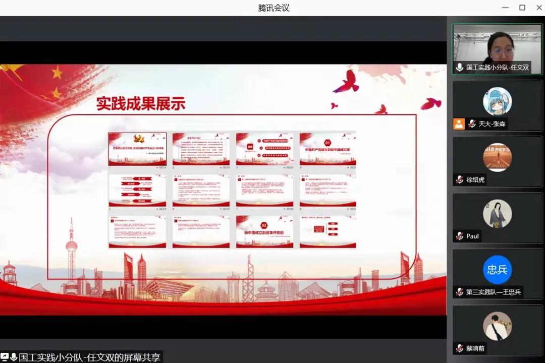 国工实践小分队以“百年初心历久弥坚——庆祝中国共产党成立100周年”为主题,将党的百年历史分为三个阶段:中国共产党成立-新中国成立前、新中国成立-改革开放前、改革开放-至今,并以此为根据制作了微党课。