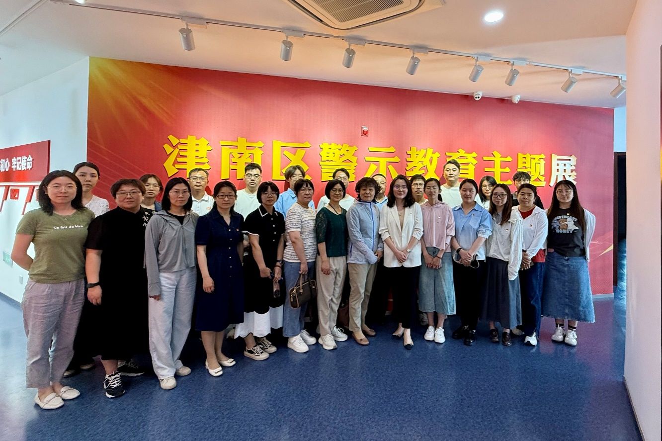 津南区警示教育主题展以“不忘初心 警钟长鸣”为主题,由历史回声、从严治党、廉声廉影、警钟长鸣、叩问初心五个篇章构成,集中展示了进入新时代以来,在党中央的坚强领导下,天津市和津南区坚定不移全面从严治党取得的工作成效,并重点选取了津南区查处的严重违纪违法典型案例进行深刻剖析,详细阐释了违反六大纪律的主要表现及其危害。参观过程中,教师党员驻足凝视《忏悔书》中落马官员的反思,审视一件件涉案物品,通过图片、文字、视频短片等形式,受警醒、知敬畏、守底线。
