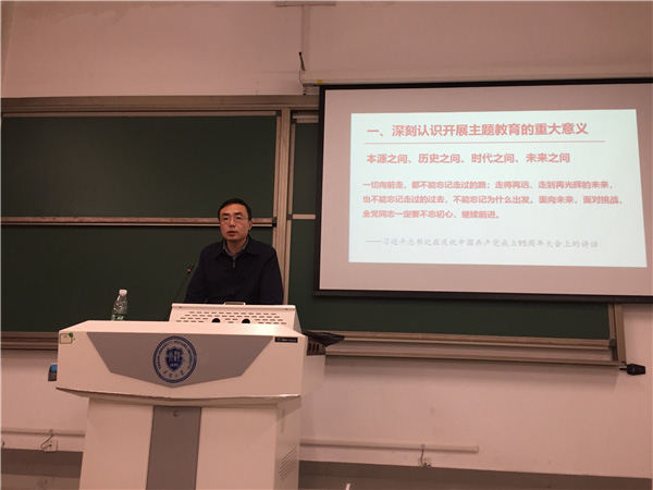 党委副书记王玮带来“不忘初心、牢记使命”主题党课,他从深刻认识开展主题教育的重大意义、高校基层党组织建设的新要求、基层党组织建设面临的问题和基层党组织建设质量攻坚的思考这四个方面,说明了开展主题教育的迫切需要和实际做法。他强调,今年学校不断加强党的建设,取得了一些成就,但存在师生的思想政治引领不充分,“三会一课”制度执行不到位等问题,要发挥“螺丝钉”精神,把每个基层党支部都建设为战斗堡垒。