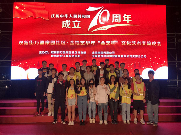 本站讯(通讯员廖镜 游莅荟)近日,天津大学求是学部茅以升第一党支部党员携2018级茅以升一班团支部入党申请人赴万盈家园社区参加了庆祝新中国成立七十周年文艺晚会志愿服务活动。