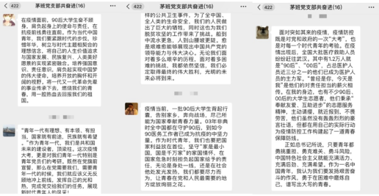 (通讯员:董雨薇) 2020年3月23日晚八点,求是学部茅以升第一党支部以线上学习的方式开展了本学期第三次组织生活。本次组织生活以学习中共中央总书记、国家主席、中央军委主席习近平给北京大学援鄂医疗队全体“90后”党员回信为主,组织全体支部党员读回信,悟初心。