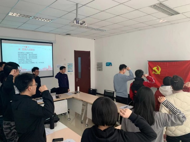 宣誓完毕后,蔡响前同志作为党支部书记进行了党支部的工作述职,他从支部情况、组织生活和整改情况对支部工作进行述职,并且展示了在过去一年中支部所组织的一些活动以及活动的照片,并强调应当在不断的实践中加强支部建设。