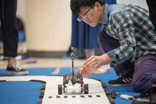 赛场上,由于临时出现问题,小车和其他队伍碰撞导致损坏,直接导致无法完赛,但我并没有因此放弃,而是沉着冷静,分析问题,在短短15分钟内就修好了小车,虽然最后成绩不理想,但这却打开了我向科创之路的大门。